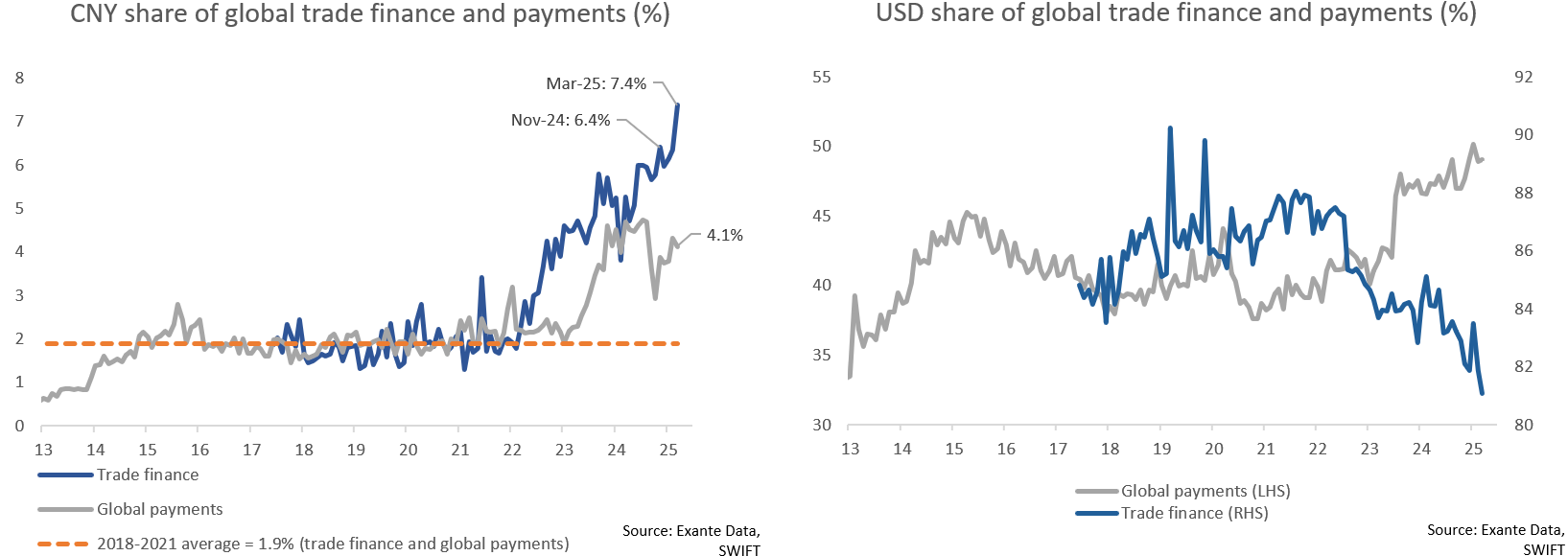 China FX diversification and the dollar The renminbi\'s role in China\'s international transactions is increasing. But beyond the renminbi, diversification away from the dollar has made little progress.