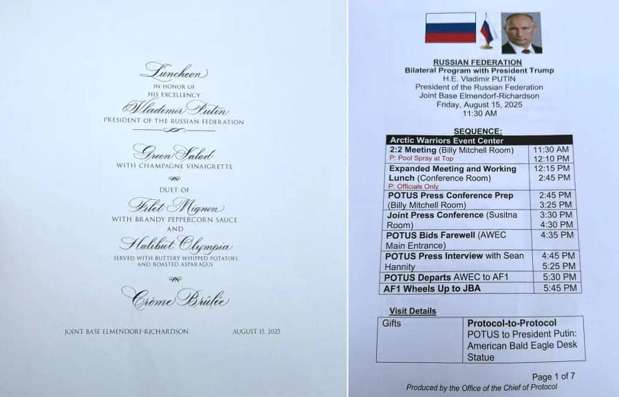 Papers Found in Alaska Hotel Reveal Trump-Putin Summit Itinerary and Details of Lunch That Did Not Happen